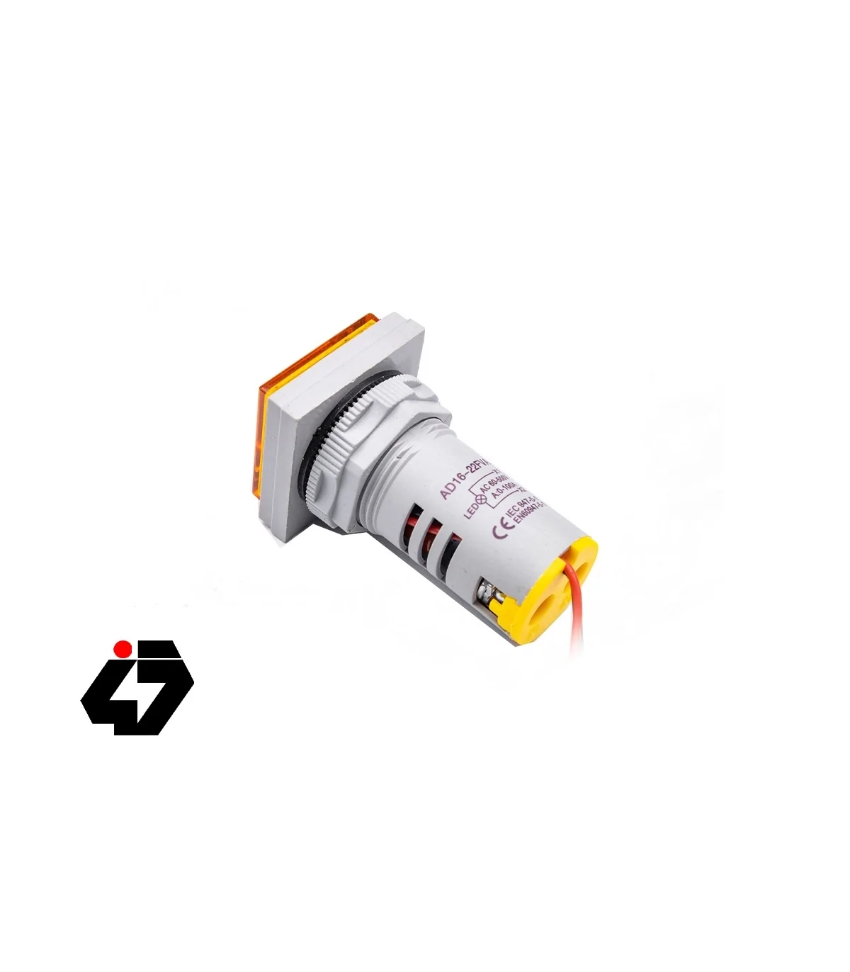 ولتمتر و آمپرمتر چراغ سیگنالی AC500V-100A زرد مربعی مدل AD16-22FVA
