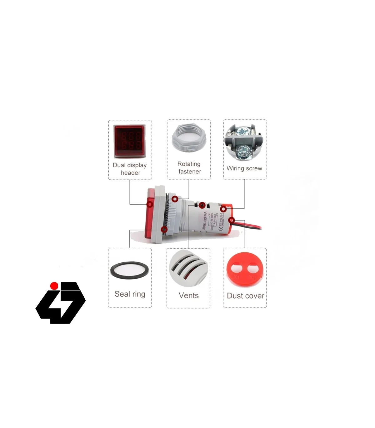 1 x AD16-22FVA Square LED Digital Dual Display Voltmeter