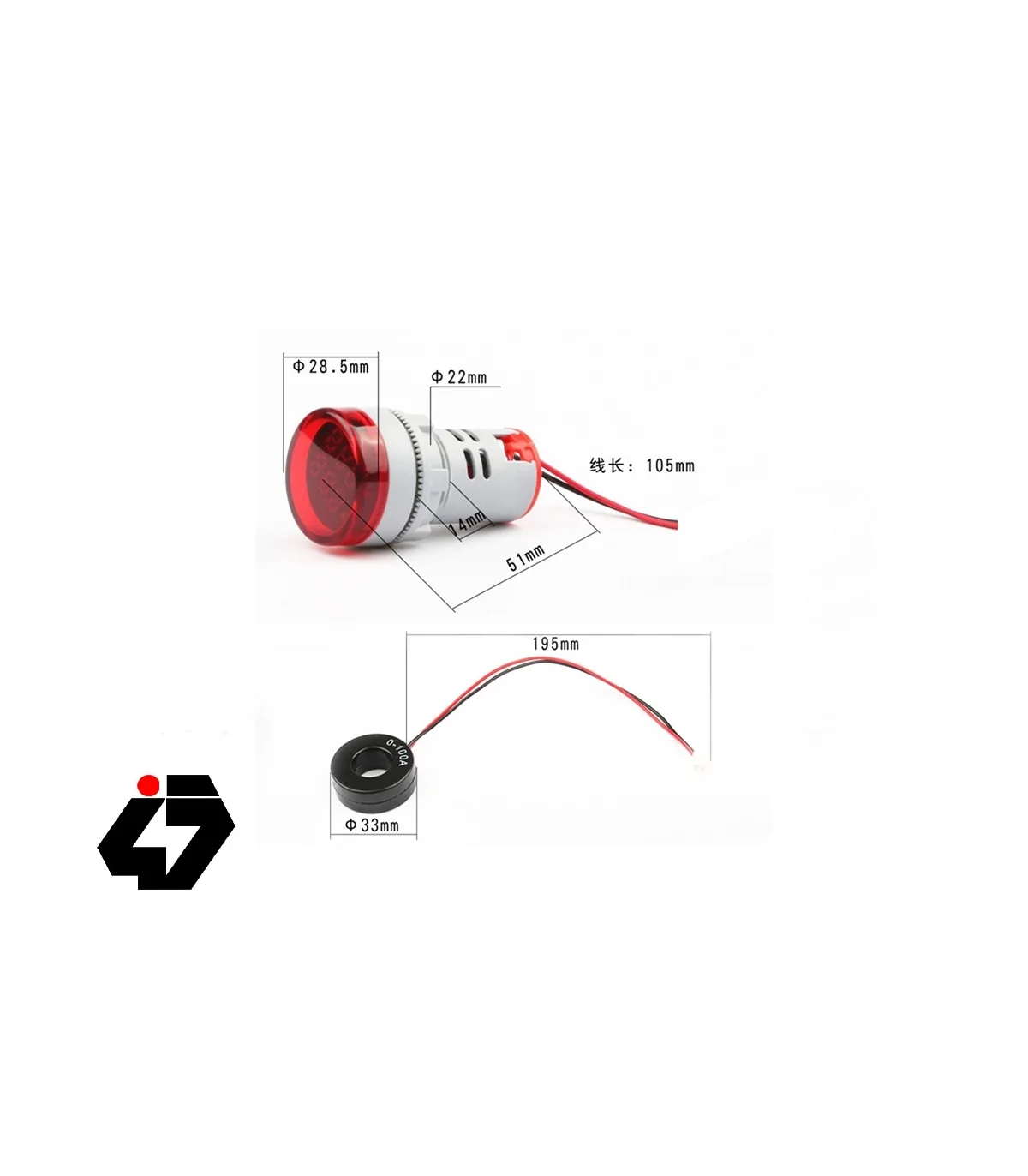 ولتمتر و آمپرمتر چراغ سیگنالی AC500V-100A زرد گرد به همراه ترانس جریان CT
