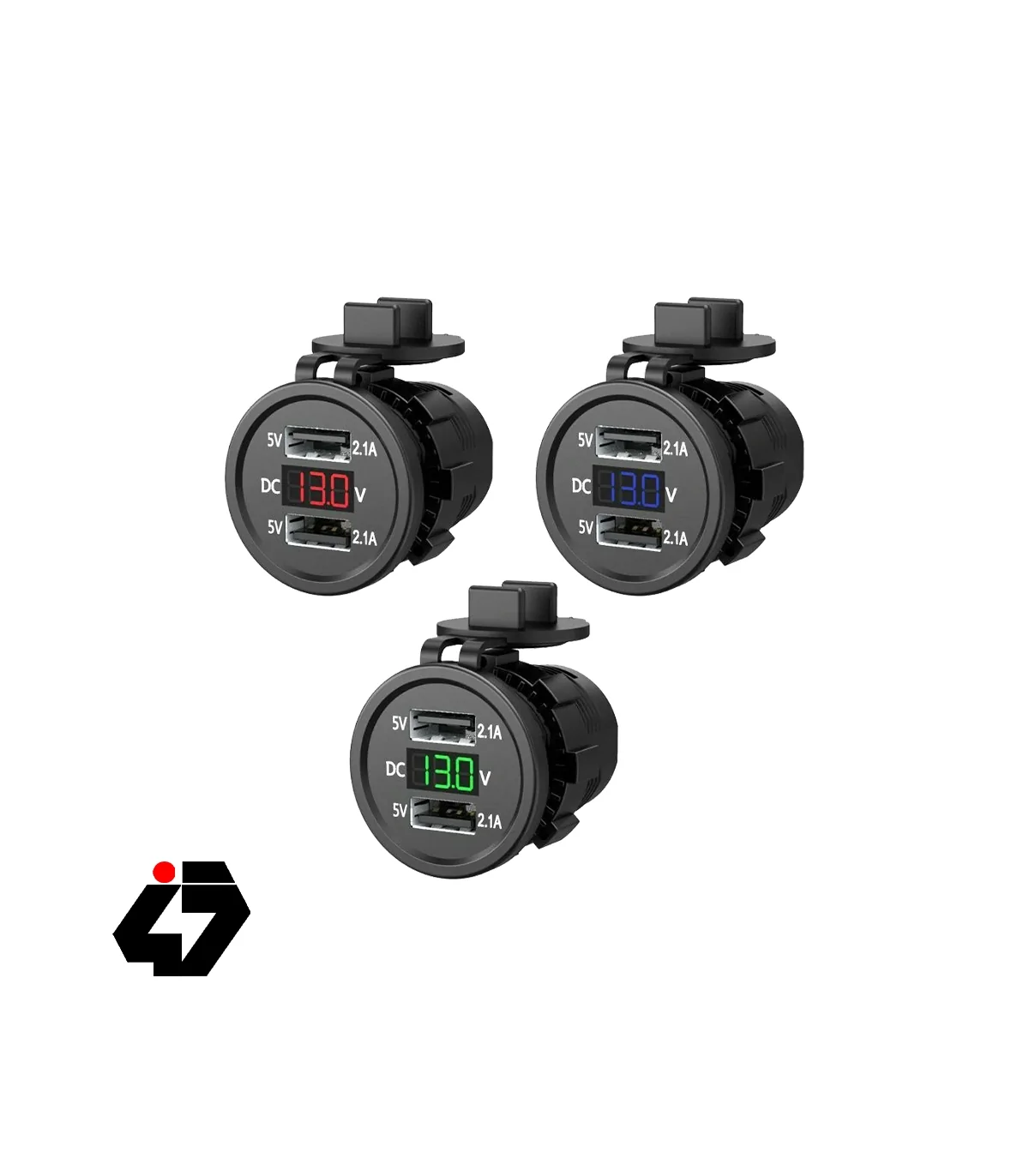 ولت متر خودرویی (قرمز) با USB (همراه با سیم رابط و جافیوزی بین راهی)