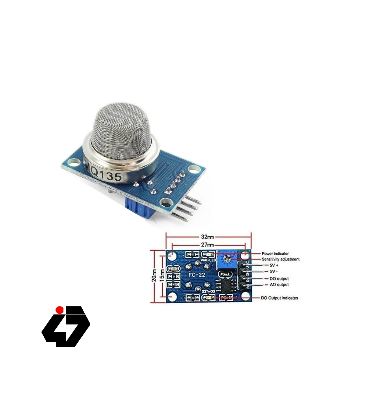 ماژول MQ135، برای تشخیص آلودگی(کیفیت) هوا مورد استفاده قرار می گیرد. در ساختار این ماژول از یک سنسور MQ135 استفاده شده است که توانایی تشخیص دود، الکل و بنزین موجود در هوا را دارد.