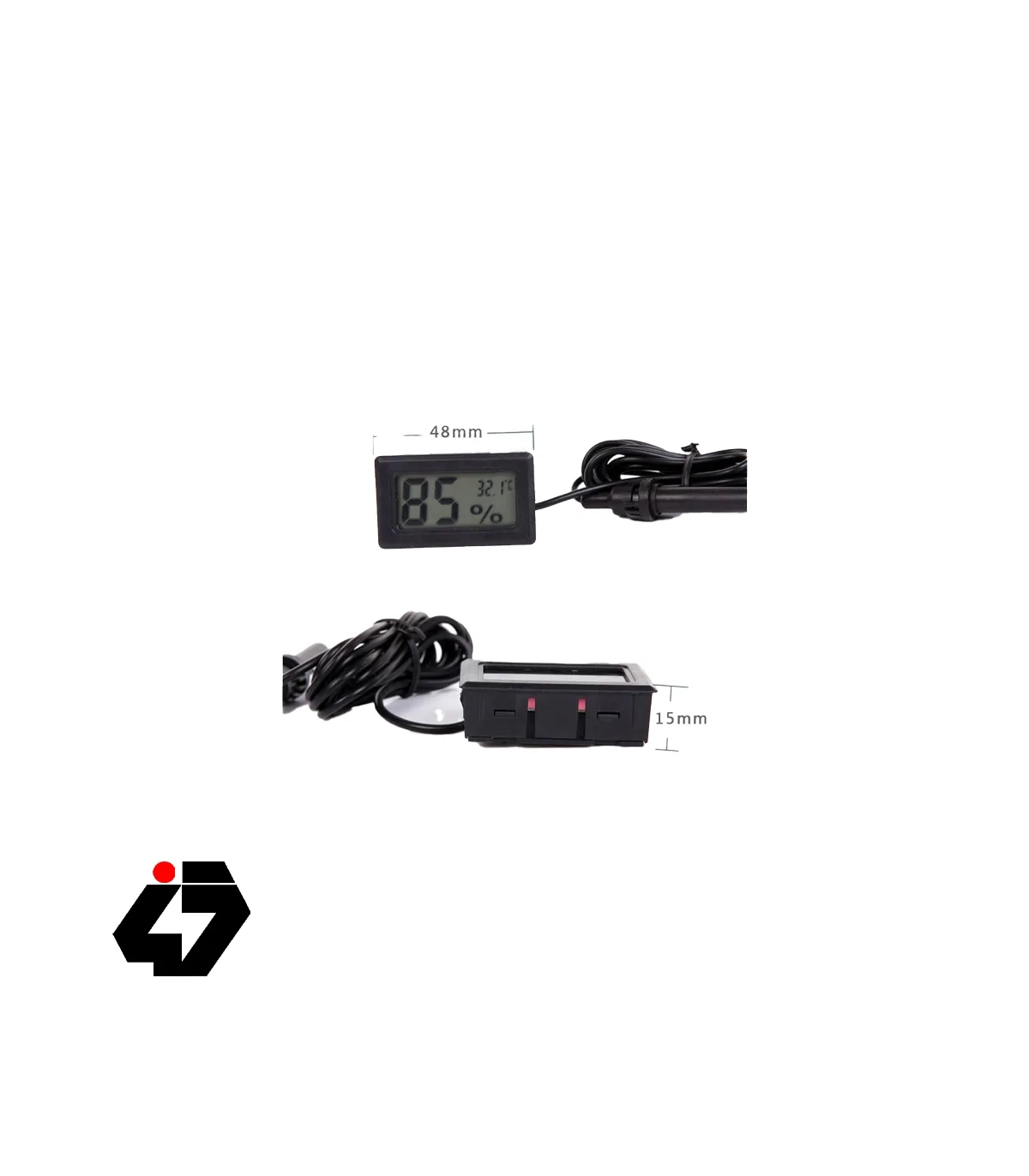 یکی از کوچکترین رطوبت سنج ها و دماسنج های دیجیتالی سیمدار با سنسور و حسگر خارجی و با نمایش رطوبت و نم محیط با فونت درشت و دما با فونت ریز