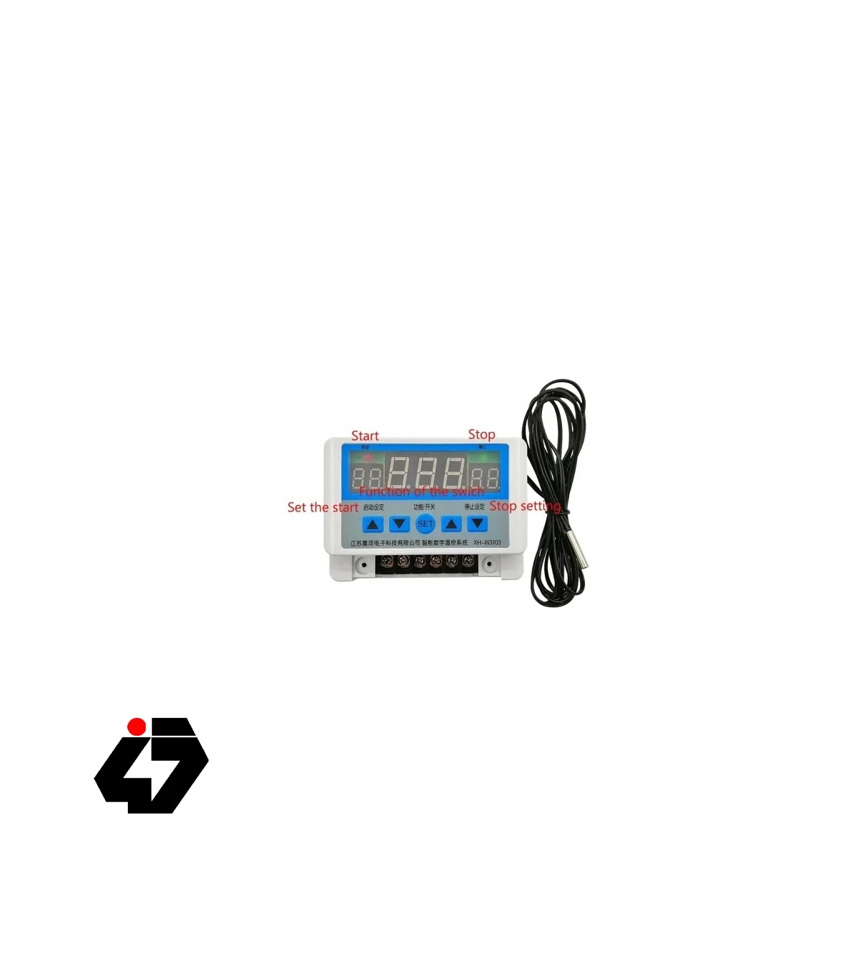 کلیدهای جهت دار سمت چپ برای تعیین دمای Start و کلید های جهت دار سمت راست برای تعیین دمای Stop می باشد. با زدن هر کلید به حالت چشمک زن در آمده و می توان با کلیدهای جهت دار روی دمای مورد نظر تنطیم کرد. نمایشگر مرکزی نشان دهنده دمای اندازه گیری شده توسط سنسور می باشد.
