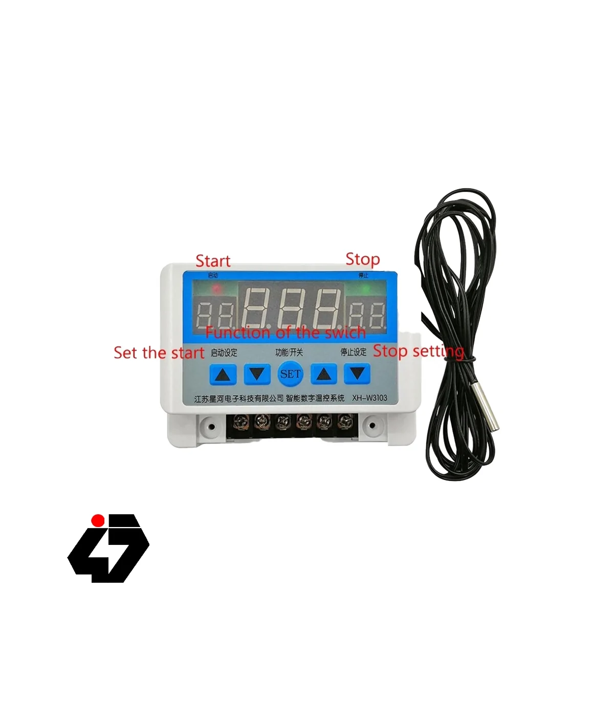 کلیدهای جهت دار سمت چپ برای تعیین دمای Start و کلید های جهت دار سمت راست برای تعیین دمای Stop می باشد. با زدن هر کلید به حالت چشمک زن در آمده و می توان با کلیدهای جهت دار روی دمای مورد نظر تنطیم کرد. نمایشگر مرکزی نشان دهنده دمای اندازه گیری شده توسط سنسور می باشد.