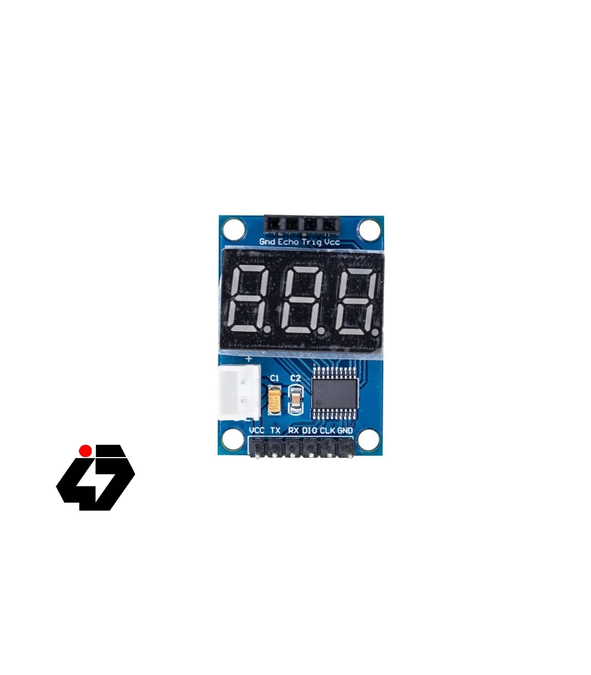 برد راه انداز اولتراسونیک به همراه نمایشگر برای نمایش فاصله اندازه گیری شده توسط ماژول اولتراسونیک
