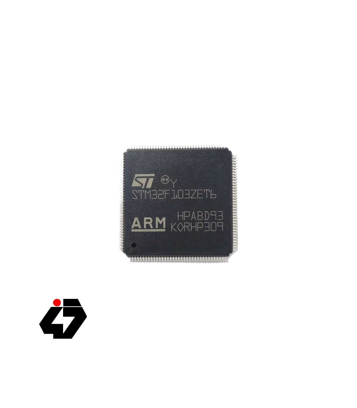 میکروکنترلر STM32F103ZET6 با هسته ARM Cortex M3 با حافظه 512KB و فرکانس کاری 72MHz ساخت شرکت ST می باشد