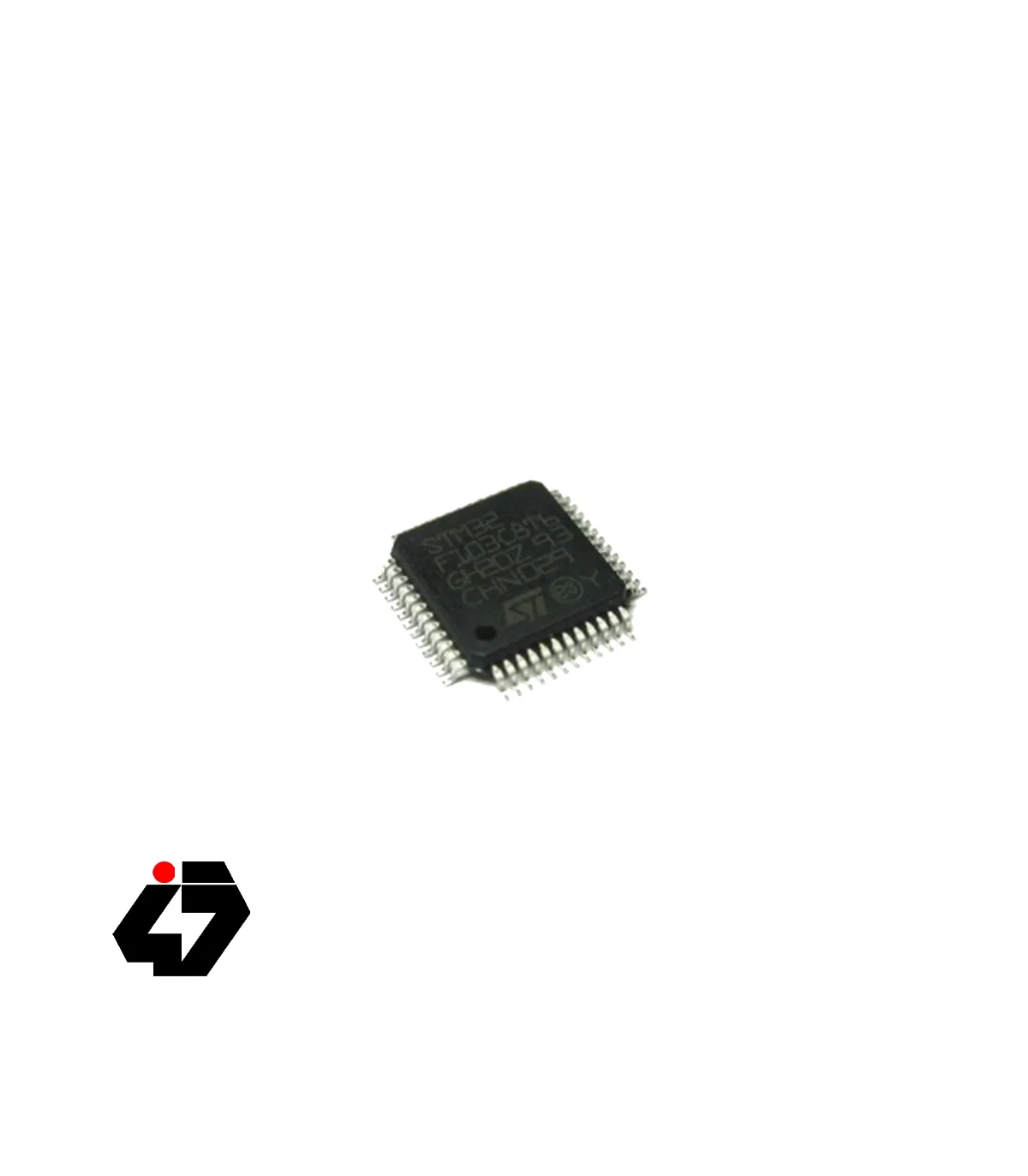 میکروکنترلر STM32F103C8T6 با هسته ARM Cortex M3 با حافظه 64KB و فرکانس کاری 72MHz ساخت شرکت ST می باشد