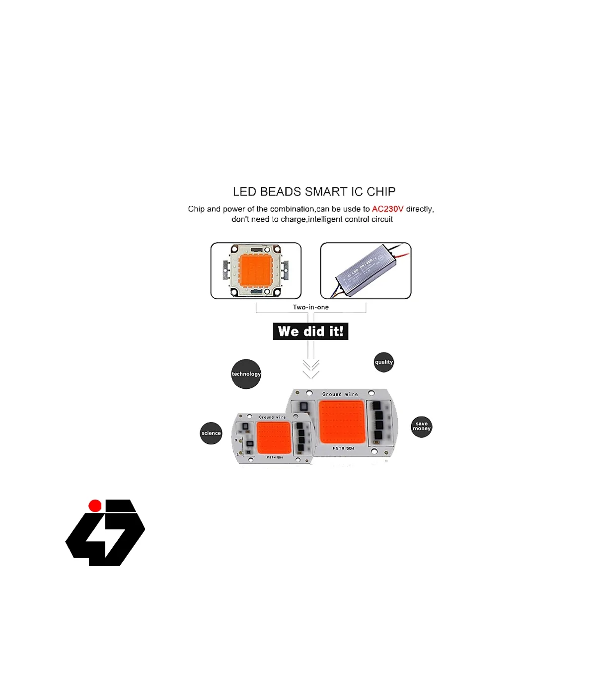 LED COB مخصوص رشد گیاه 50W 220V با درایور داخلی