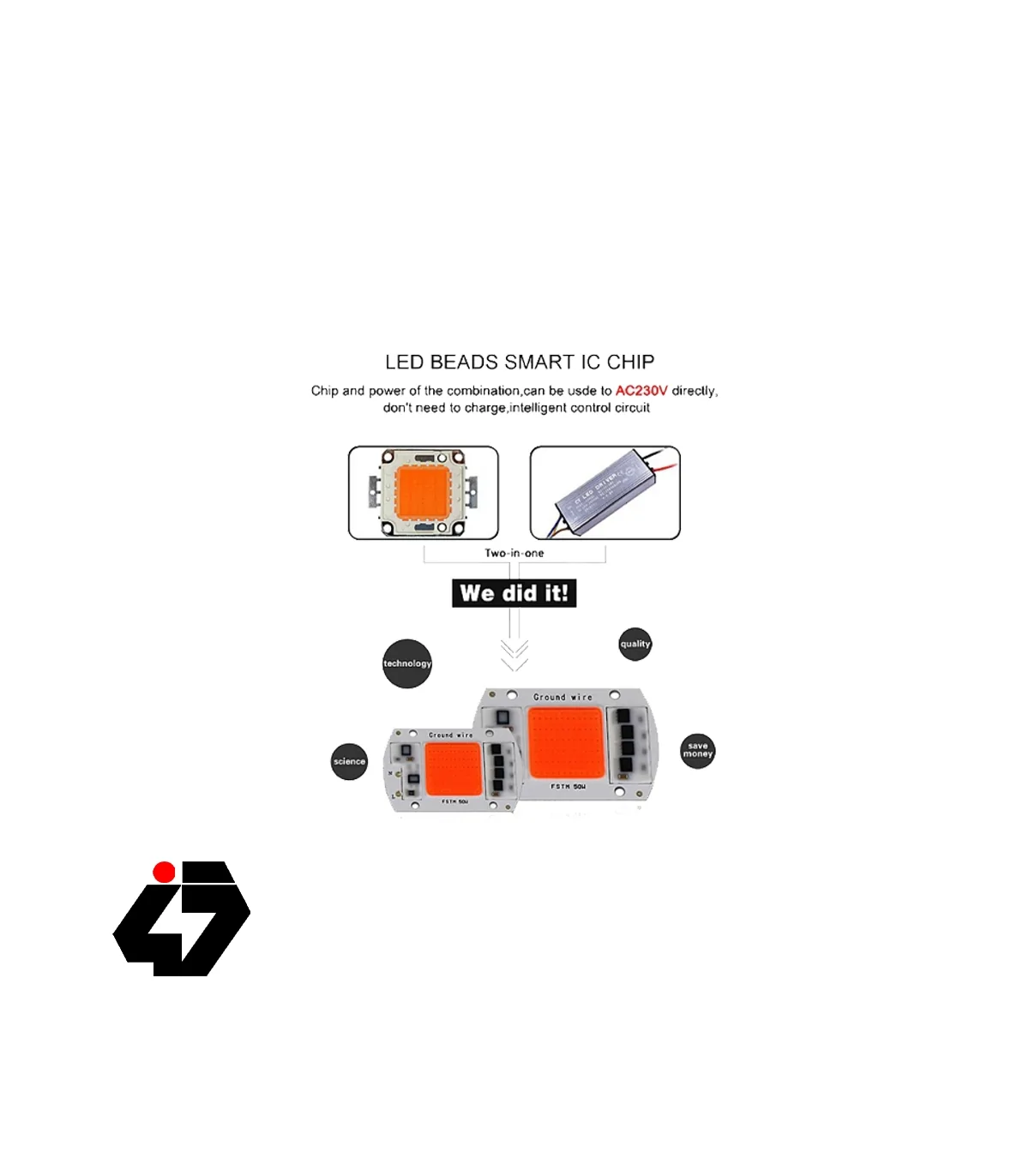 LED COB مخصوص رشد گیاه 50W 220V با درایور داخلی